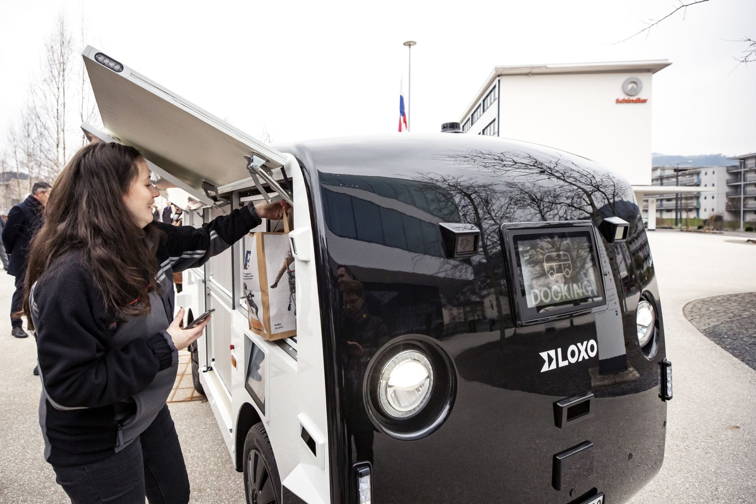 And it’s not just a first for Switzerland, but for the whole of Europe too! The test phase of the pilot project is taking place in Ebikon, in the canton of Lucerne. The “LOXO Alpha” is in use from Monday to Friday, transporting orders from the nearby Migros supermarket to the premises of the Schindler elevator company.